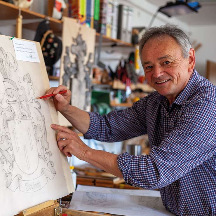 Seit mehreren Jahren haben wir uns auf die Herstellung von Familienwappen konzentriert. Dabei arbeiten wir eng mit Heraldikern zusammen, um individuelle und authentische Wappen zu gestalten. Ebenso spezialisieren wir uns auf die Herstellung von Ornamenten und Verziehrungen für Privatkunden aber auch für Schreinerei, die Möbelstücke oder Türen mit kunstvollen Schnitzarbeiten anbieten.