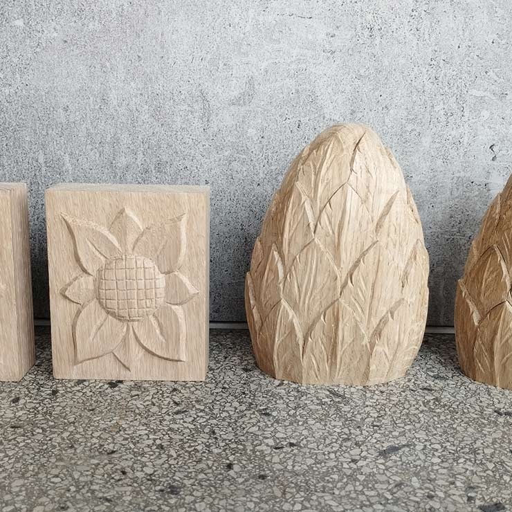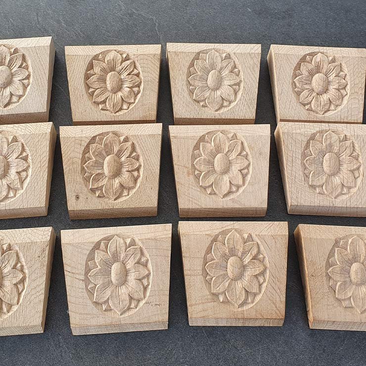 Ob florale Muster, klassische Formen oder maßgefertigte Sonderwünsche – wir arbeiten mit viel Gefühl fürs Material und einem Blick für das Besondere. Meist verwenden wir gut abgelagertes Lindenholz aus der Rhön, auf Wunsch sind aber auch andere Holzarten möglich.