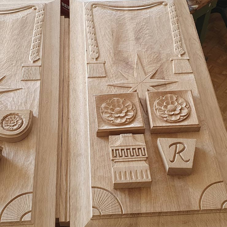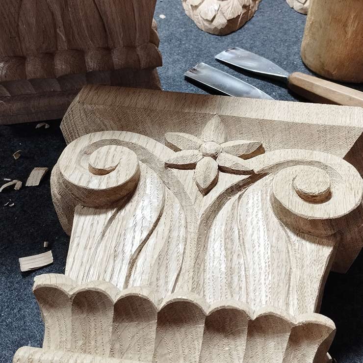 Unsere Ornamente und Verzierungen entstehen aus dem Zusammenspiel von Tradition und individueller Gestaltung. In reiner Handarbeit schnitzen wir Holz zu kunstvollen Elementen, die Möbel, Türen oder Räume bereichern.