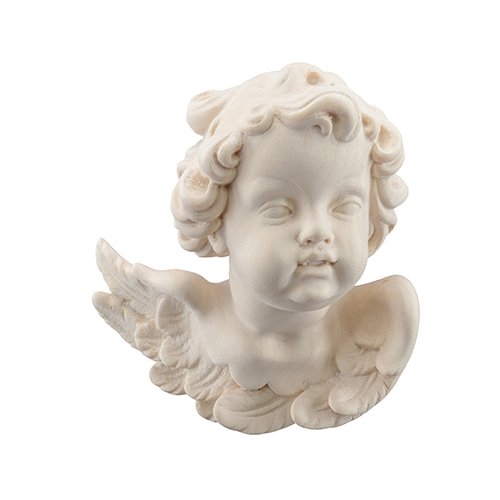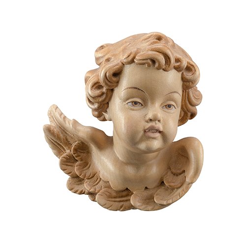 Dieser kunstvoll geschnitzte Engelskopf mit Blickrichtung nach links verkörpert die klassische Schönheit barocker Engelsskulpturen. Mit zarten Gesichtszügen und feiner Haarstruktur strahlt er eine ruhige und beschützende Präsenz aus. Ideal als Wanddekoration oder als zierliches Sammlerstück. In zwei Größen erhältlich – 6,5 cm und 9 cm – sowie in naturbelassener, gebeizter oder handbemalter Ausführung, fügt sich dieser Engelskopf harmonisch in verschiedene Einrichtungsstile ein und bereichert jedes Zuhause mit einem Hauch himmlischer Eleganz.