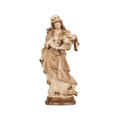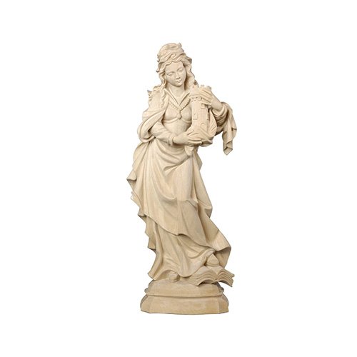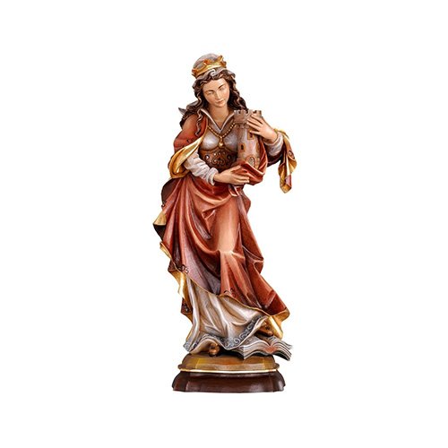 Diese eindrucksvolle Darstellung zeigt die Heilige Barbara mit ihrem traditionellen Turm, in dem sie der Legende nach Schutz fand, und einem offenen Buch zu ihren Füßen als Zeichen ihrer Weisheit und Standhaftigkeit. Jedes Exemplar ist in liebevoller Handarbeit gefertigt und spiegeln die tiefe Symbolkraft der Heiligen wider. Erhältlich in drei Oberflächenvarianten – naturbelassen, dezent gebeizt oder detailreich handbemalt – und in drei Größen, bereichert diese Figur jedes Zuhause als Ausdruck von Schutz und Inspiration.