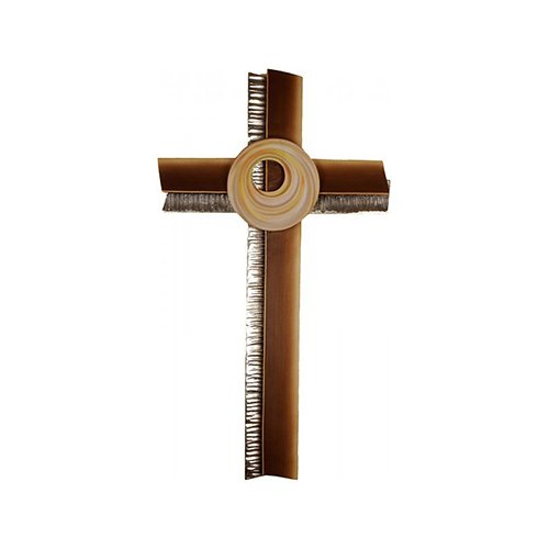 Dieses besondere Kreuz besticht durch sein rundes Element im Zentrum und die kunstvolle, detailreiche Bemalung. Durch die Kombination aus Handwerkskunst und moderner Gestaltung mit abgesetzten Elementen entsteht ein einzigartiger Blickfang.