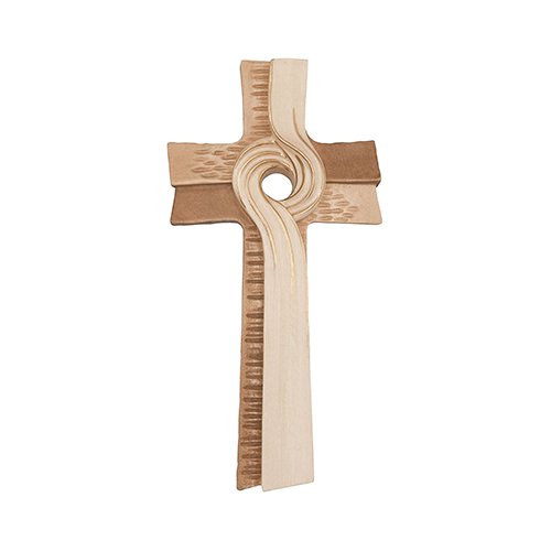Modernes Kreuz mit geschwungener Form. Dieses Kreuz besticht durch seine einzigartige, geschwungene Linienführung, die Bewegung und Dynamik in das traditionelle Symbol des Glaubens bringt. Die geschnitzten Verzierungen unterstreichen die Qualität des Kunsthandwerks und die Bemalung von Hand machen jedes Stück zu einem Unikat. Egal ob gebeizt oder kunstvoll bemalt – dieses Kreuz bringt zeitlose Eleganz und Handwerkskunst in Einklang.