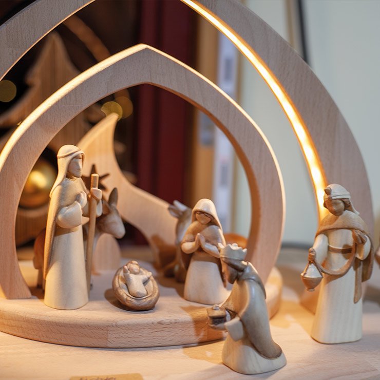 Seit vielen Generationen beschäfigen wir uns mit der Herstellung von Weihnachtskrippen. Wir bieten eine große Auswahl an Krippen-figuren in verschiedenen Modellen und Größen – von traditionell bis modern.